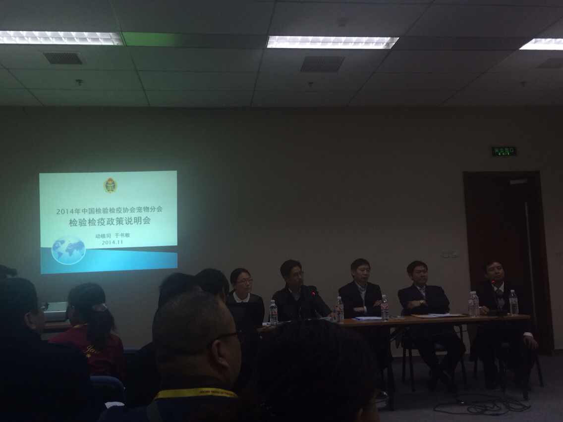2014年11月17日,寵物食品進出口檢驗檢疫政策說明會暨寵物食品用品檢驗檢疫分會2014年工作總結會在北京舉行。參加會議的有中國出入境檢驗檢疫協會鮑俊凱秘書長、郭金貴副秘書長,國家質檢總局動植司物種資源處于書敏副處長,溫州出入境檢驗檢疫局動植檢處王素華副處長,還有多名寵物食品用品檢驗檢疫分會副會長單位、會員單位和寵物食品用品企業人士也參加了此次會議。會議由中國出入境檢驗檢疫協會寵物食品用品檢驗檢疫分會程鋼秘書長主持。